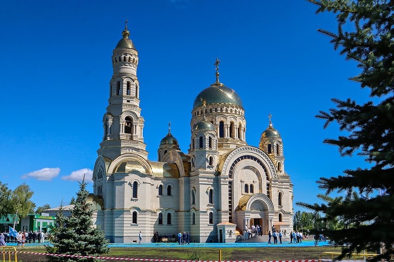 Прототипом храма стал Кронштадтский Морской собор святителя Николая Чудотворца. В архитектуре прослеживаются элементы морского стиля. Сверху он представляет собой корабль, что символично в православии - это воплощает спасение с помощью веры. Входы в церковь оформлены в виде ковчега. Площадь - 450 кв. м, высота - более 35 м, звонница имеет 13 колоколов (число апостолов и Христос). Самый большой высотой 3,5 м , вес 6,5 тонн. Его звон слышен в хорошую погоду за 45 км. Самый маленький весит 8 кг. Храм вмещает около 800 человек. Территория комплекса занимает 30 378 кв.м.