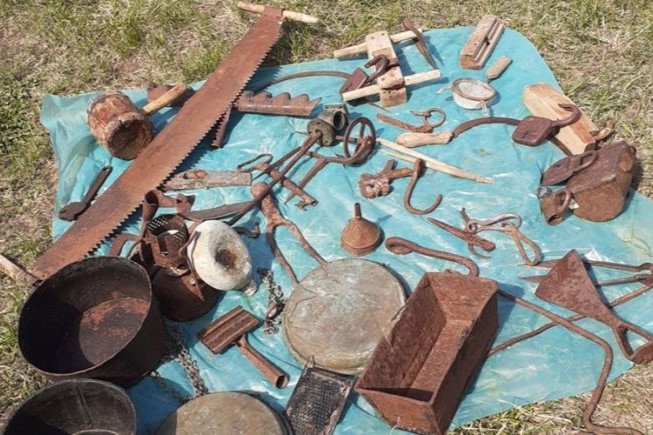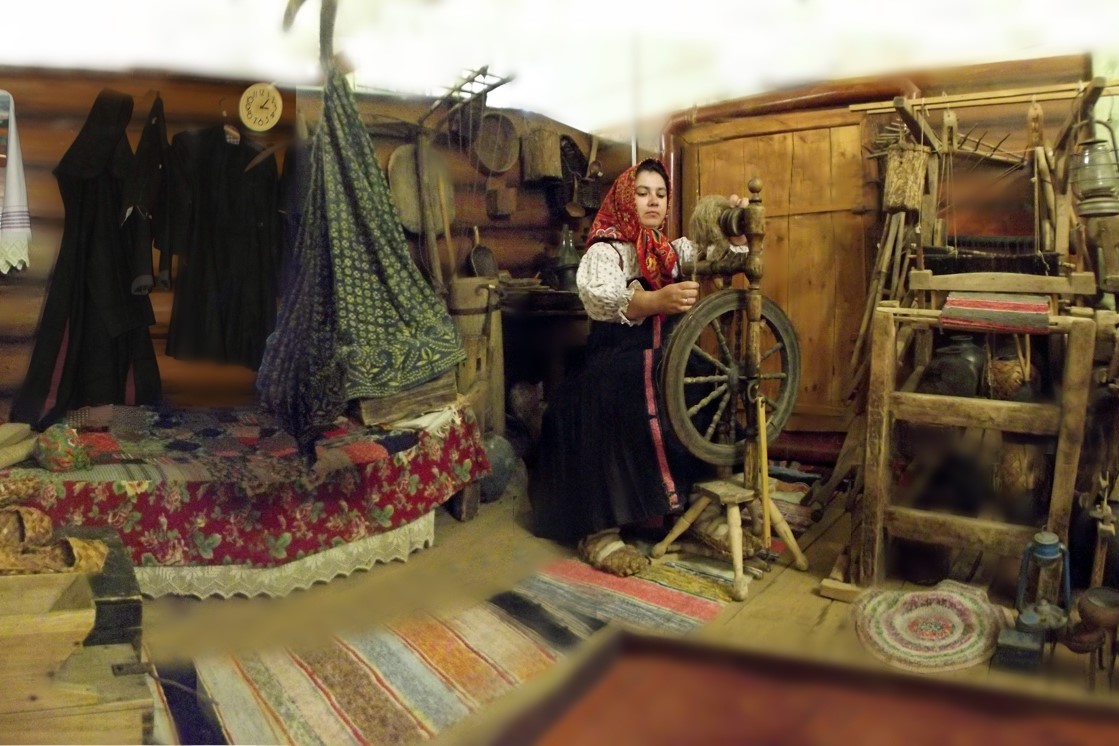 Этнографический дворик на прилегающей территории музея, где представлены орудия труда и предметы крестьянского быта. Иллюстративное сопровождение – фотографии улиц села и жителей села первой четверти ХХ века.