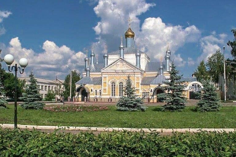 На другой стороне Базарной площади, напротив монастыря, находится Христовоздвиженская церковь 1823 года постройки. Визуально она сильно отличается от Свято-Ольгинской церкви,тем не менее, церкви создают весьма приятный и патриархальный облик главной площади города.