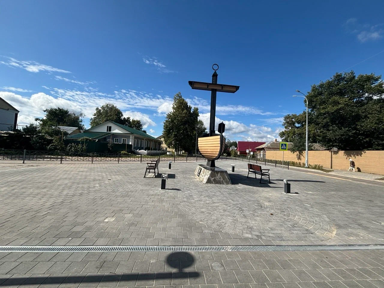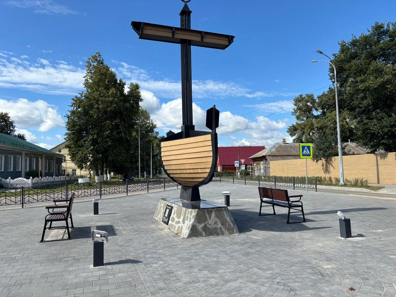 Ключевой элемент проекта благоустройства ул. Ленина установлен в композиционно важной точке территории — в месте ее стыка с исторической частью города. В образе памятника прочитывается корабельная и христианская тематика, связанная с памятью о святом адмирале Ф.Ф. Ушакове, которого особенно чтут в Темникове, а также символ якоря, как крепкой опоры, которая держит горожан на своей Родине.