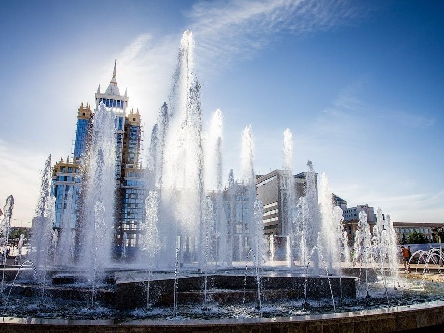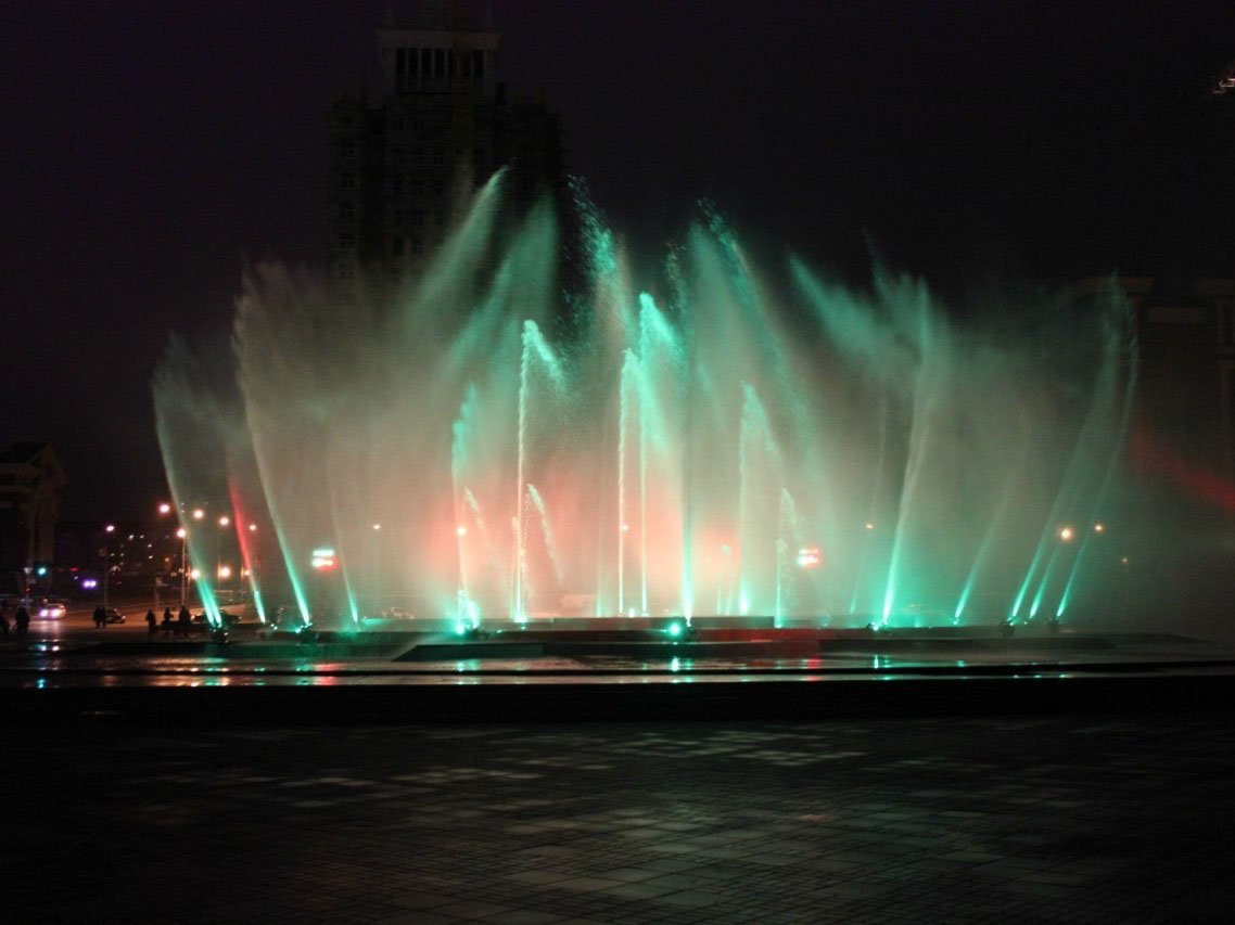 Фонтан выполнен в виде национального мордовского орнамента. Одной из главных его особенностей является так называемая «босоногая зона», где уровень воды составляет 5–10 см. Здесь любой желающий сможет, разувшись, прогуляться. Это высокотехнологичное сооружение с многочисленными режимами водных эффектов. В темное время суток предусмотрена возможность передачи трехмерного изображения на вертикальную распыленную поверхность водных струй, высота которых достигает 45 м.
