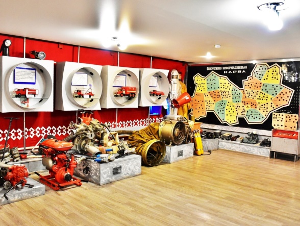 Центр находится в здании пожарной охраны и состоит из 4-х действующих залов: зал истории, зал техники, зал профилактики, зал по истории районов Республики Мордовия. В числе экспонатов центра представлены диорама «Комната до и после пожара», макеты, модели пожарных машин, снаряжение пожарных и многое другое.