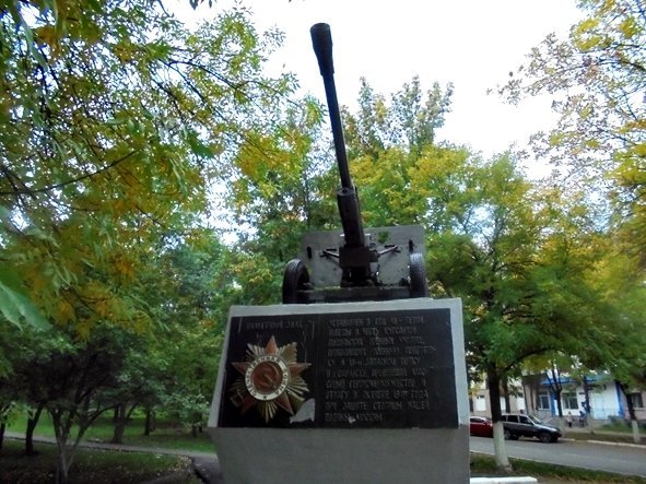 В 1985 г. страна широко отмечала 40-летие Победы в Великой Отечественной войне над фашистской Германией. В честь этого события 6 мая 1985 г. был установлен памятный знак в честь воинского подвига курсантов подольских училищ в сквере, названном их именем, на массивном бетонном постаменте установлена 75-миллиметровая пушка. На прикрепленной к переднему плану постамента плите, обозначен орден Отечественной войны.