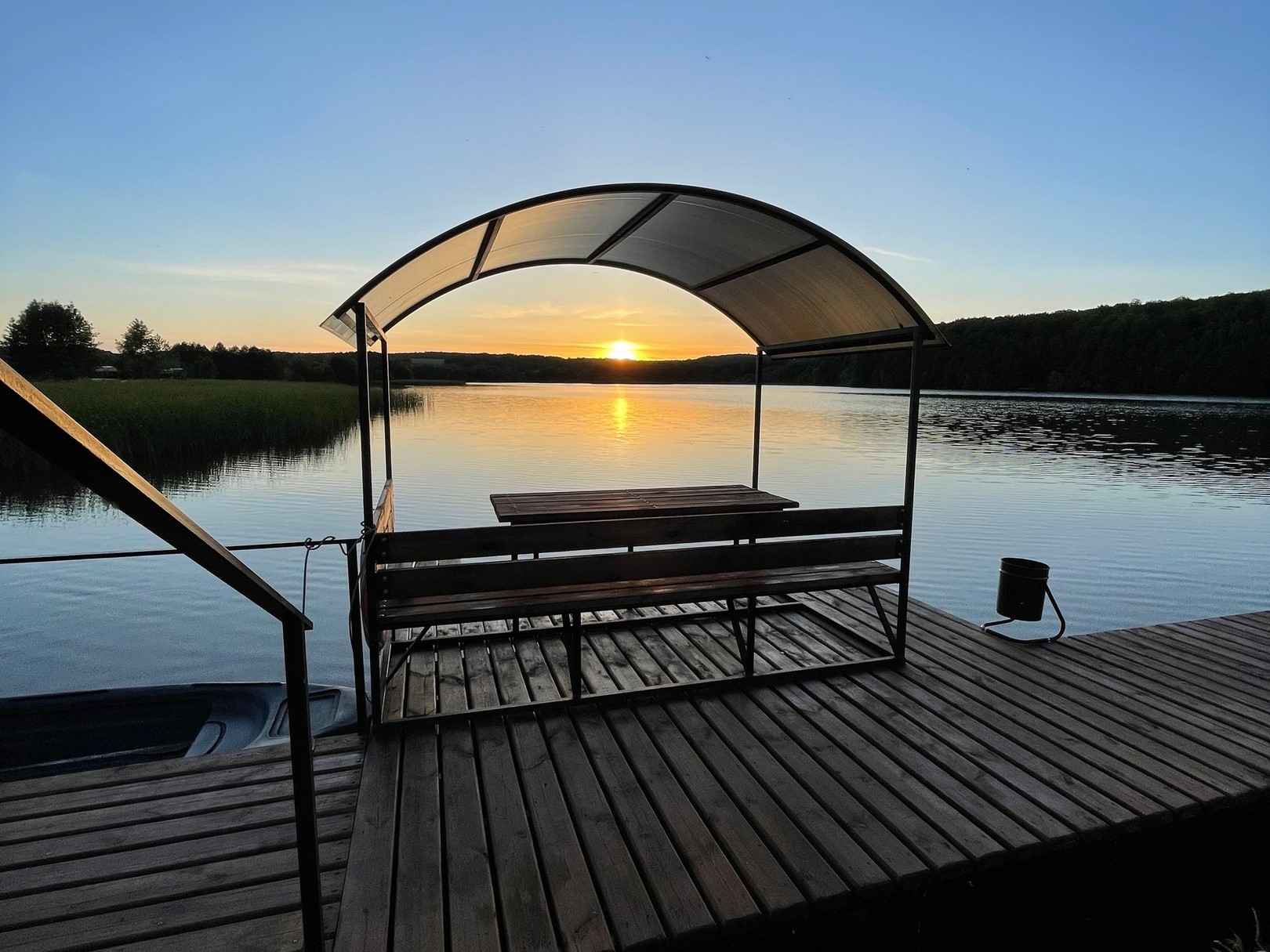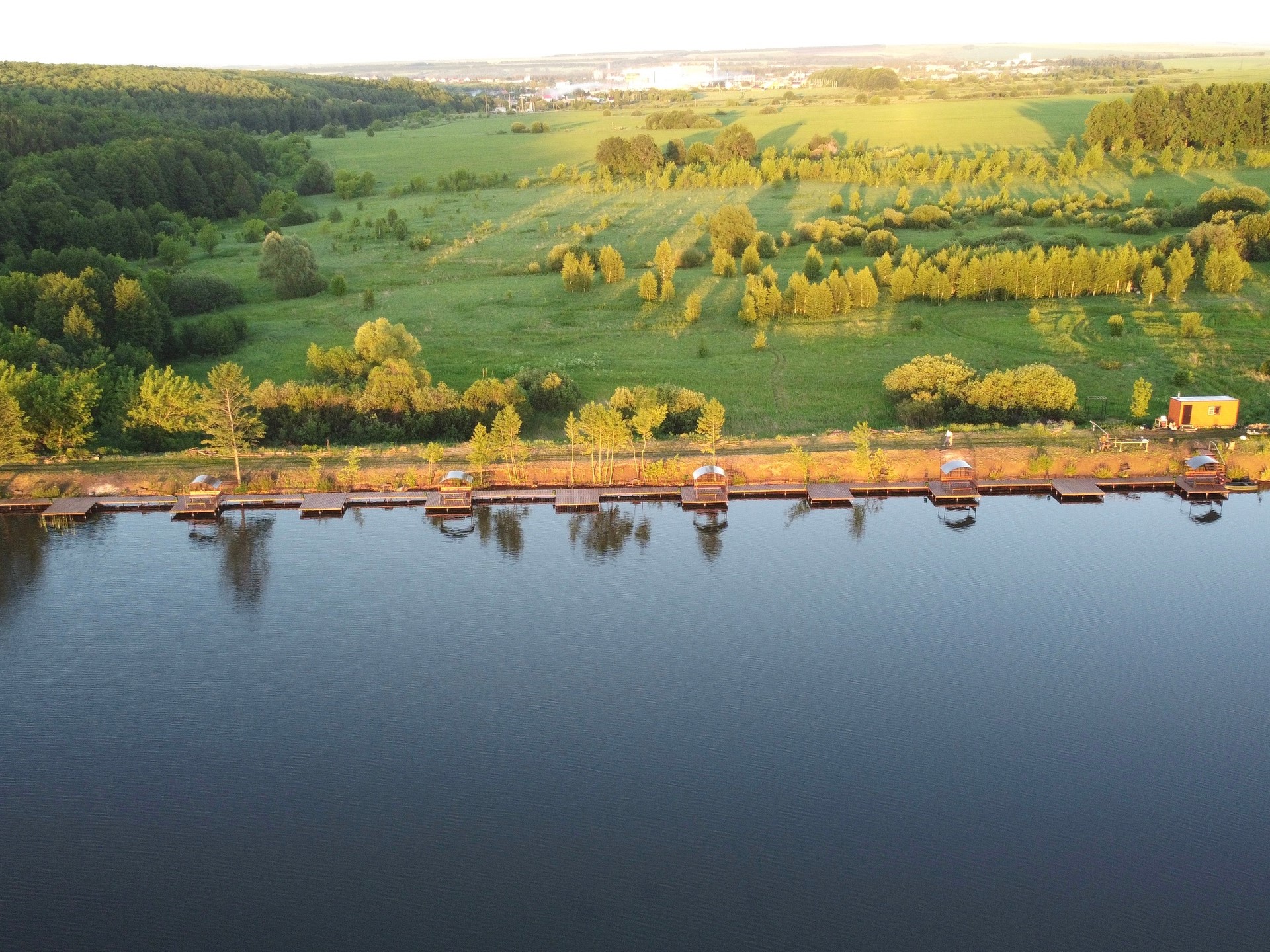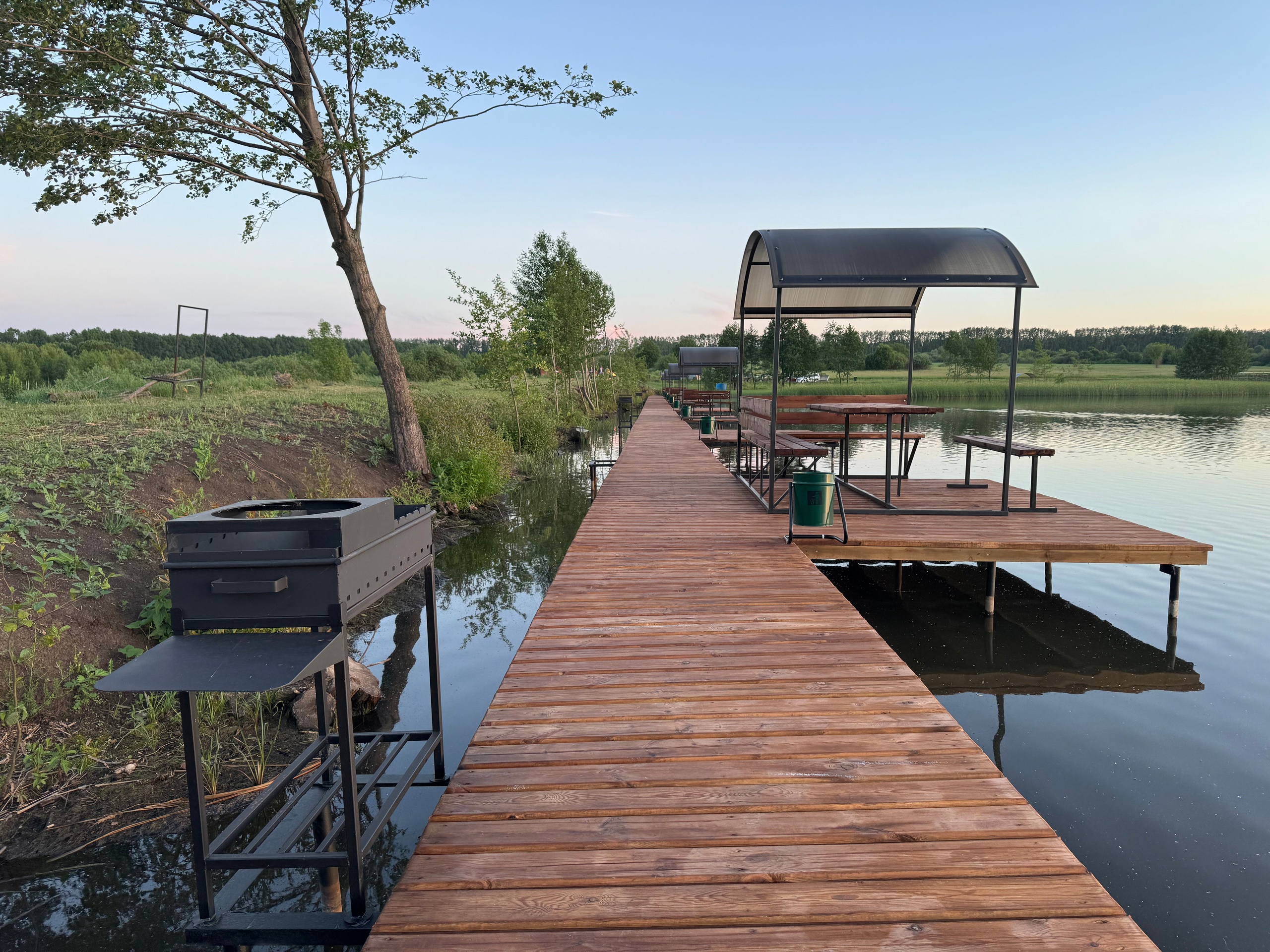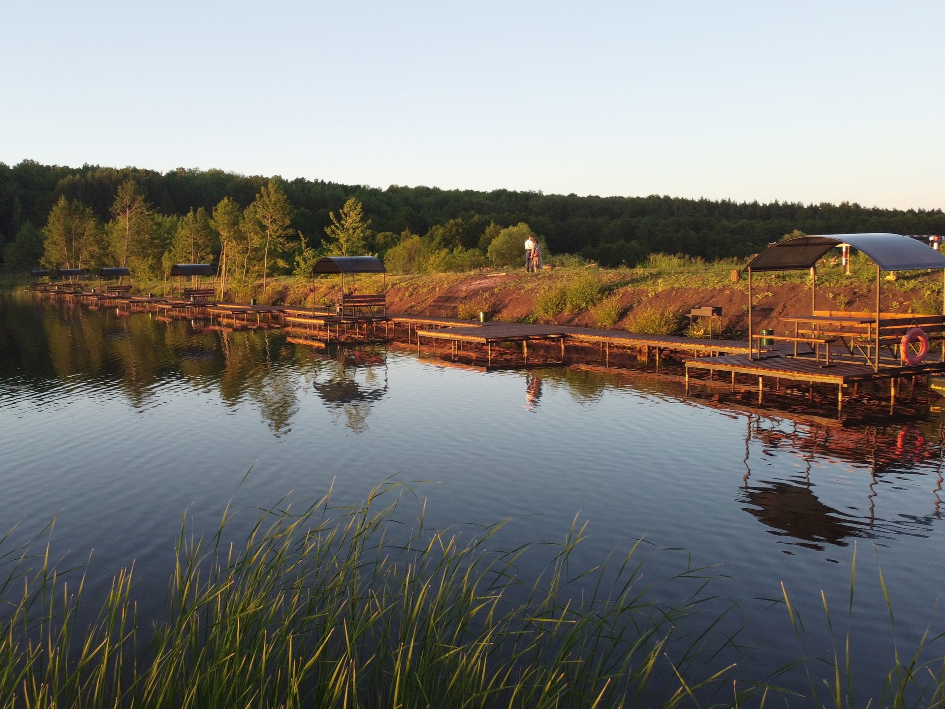 На береговой линии построены мостки и беседки для рыбалки и отдыха.