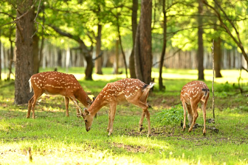В сафари-парке в естественной среде обитания живут более 300 пятнистых оленей, маралы, кабаны и семья из 4 лошадей. Это особенная территория, где животные ощущают себя безопасно, сыто, отдыхают и греются на солнышке в полях. Тут животных кормят, любят и угощают лакомствами. А к лошадям приезжает инструктор, который дрессирует всю лошадиную семью.