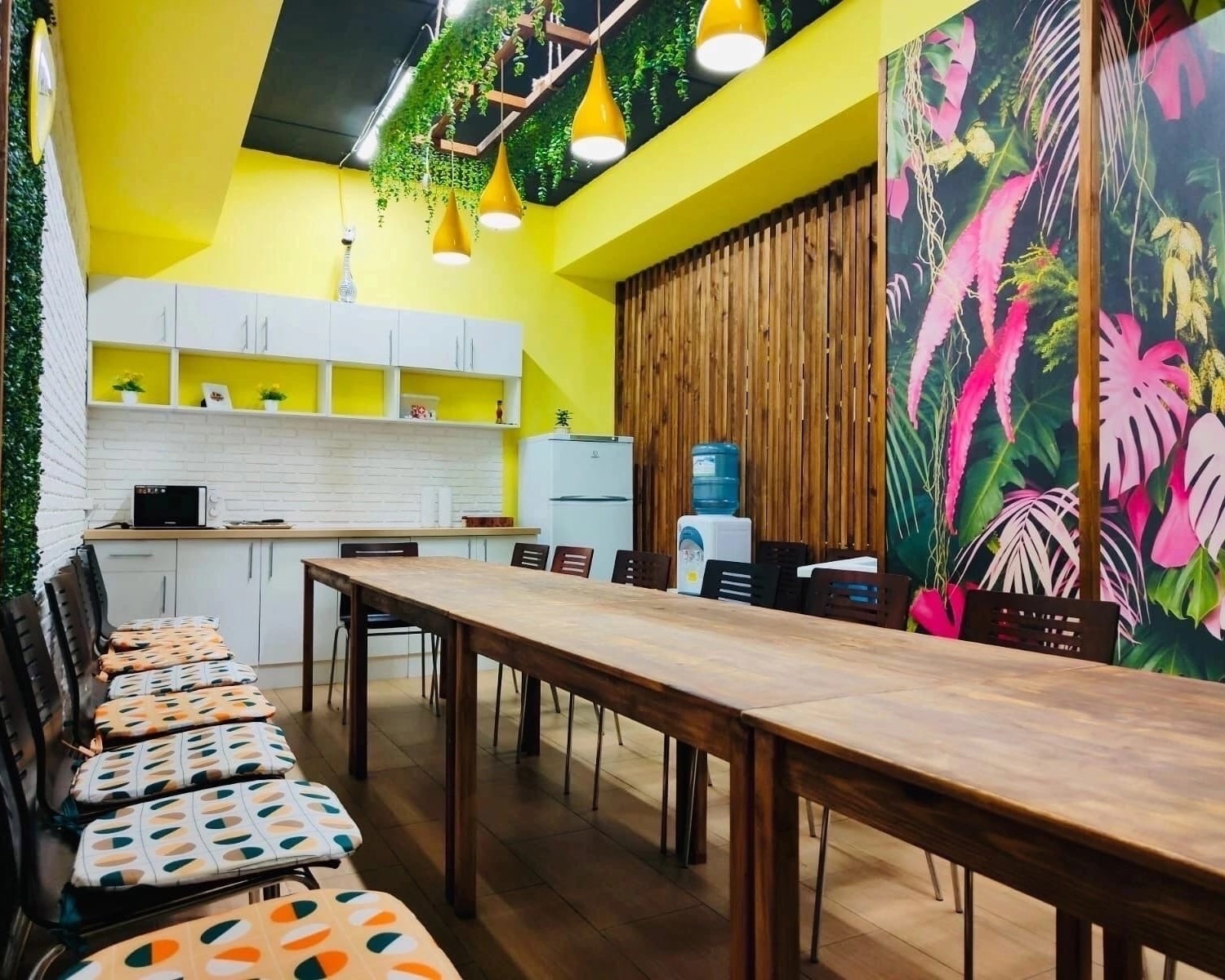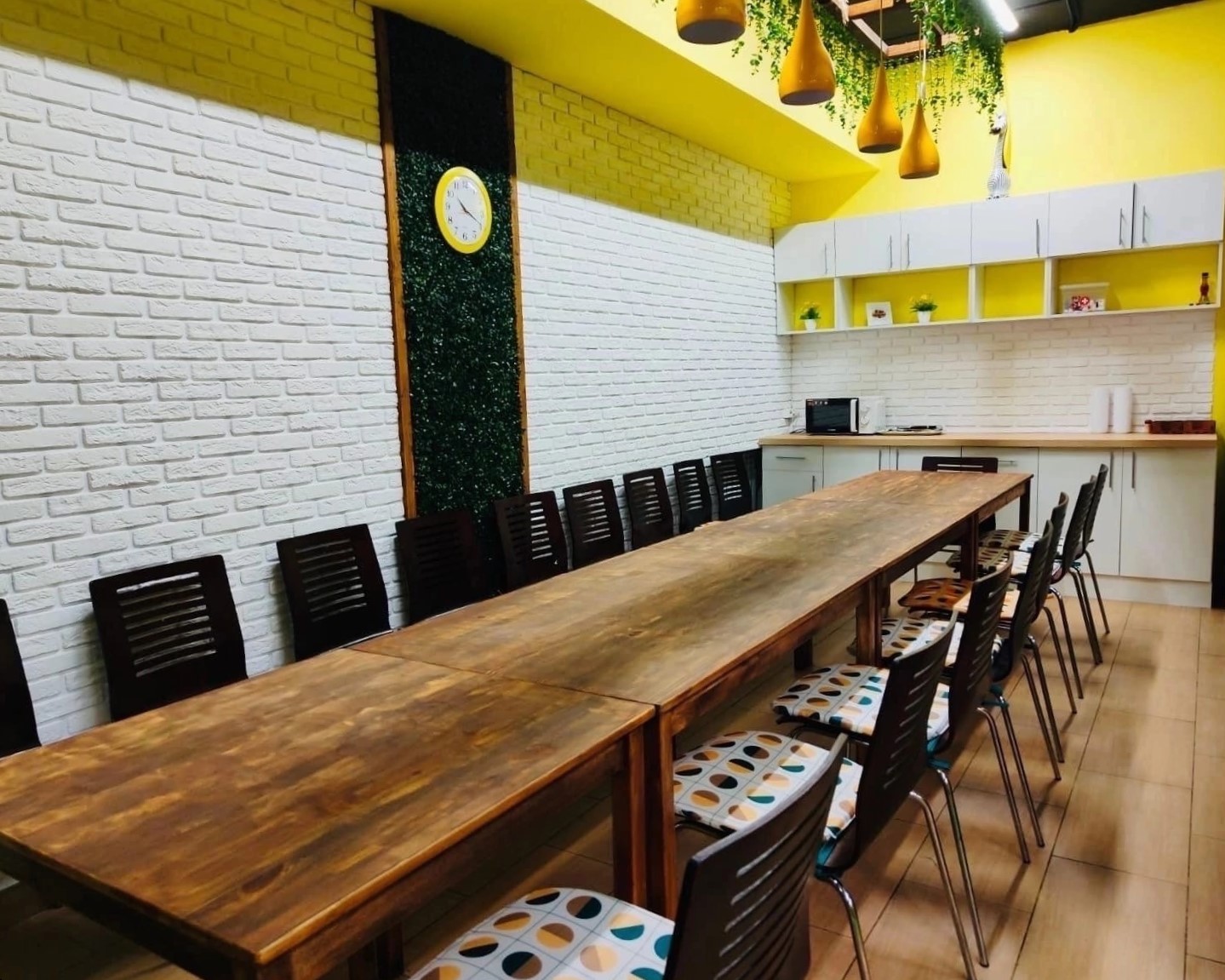 Рассчитана на 20 посадочных мест (но можно и больше). Включает в себя полноценную кухню со всем необходимым оборудованием (микроволновая печь, холодильник, кулер с горячей и холодной водой).