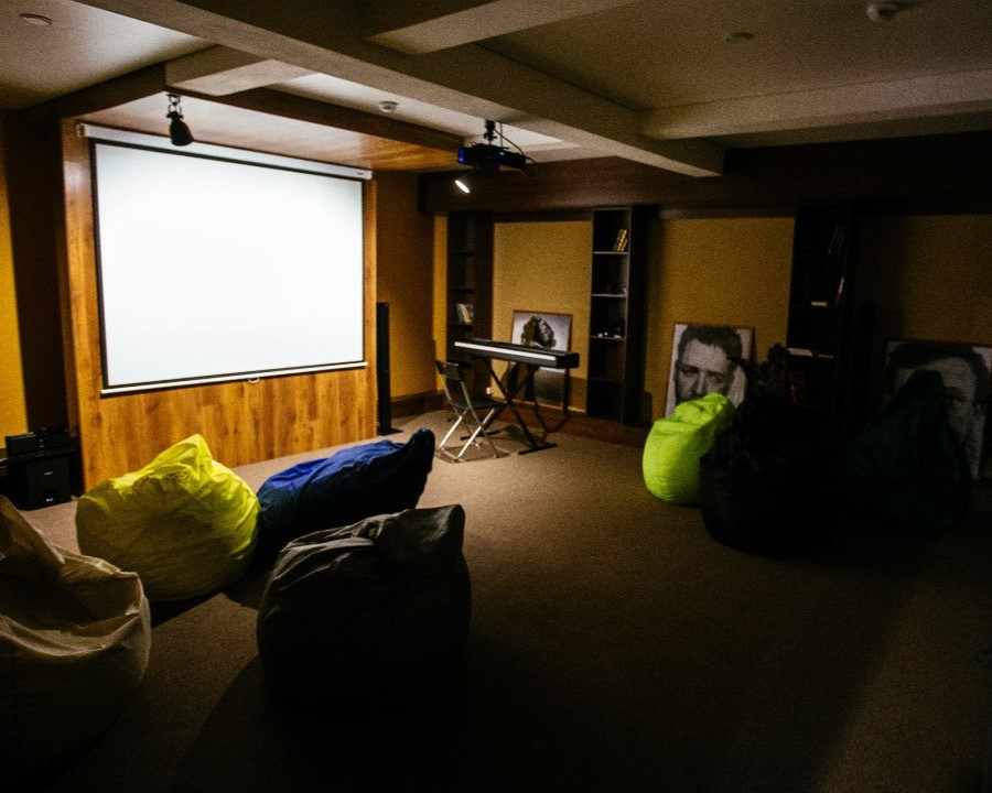 Кинозал с большим экраном и отличным звуком;