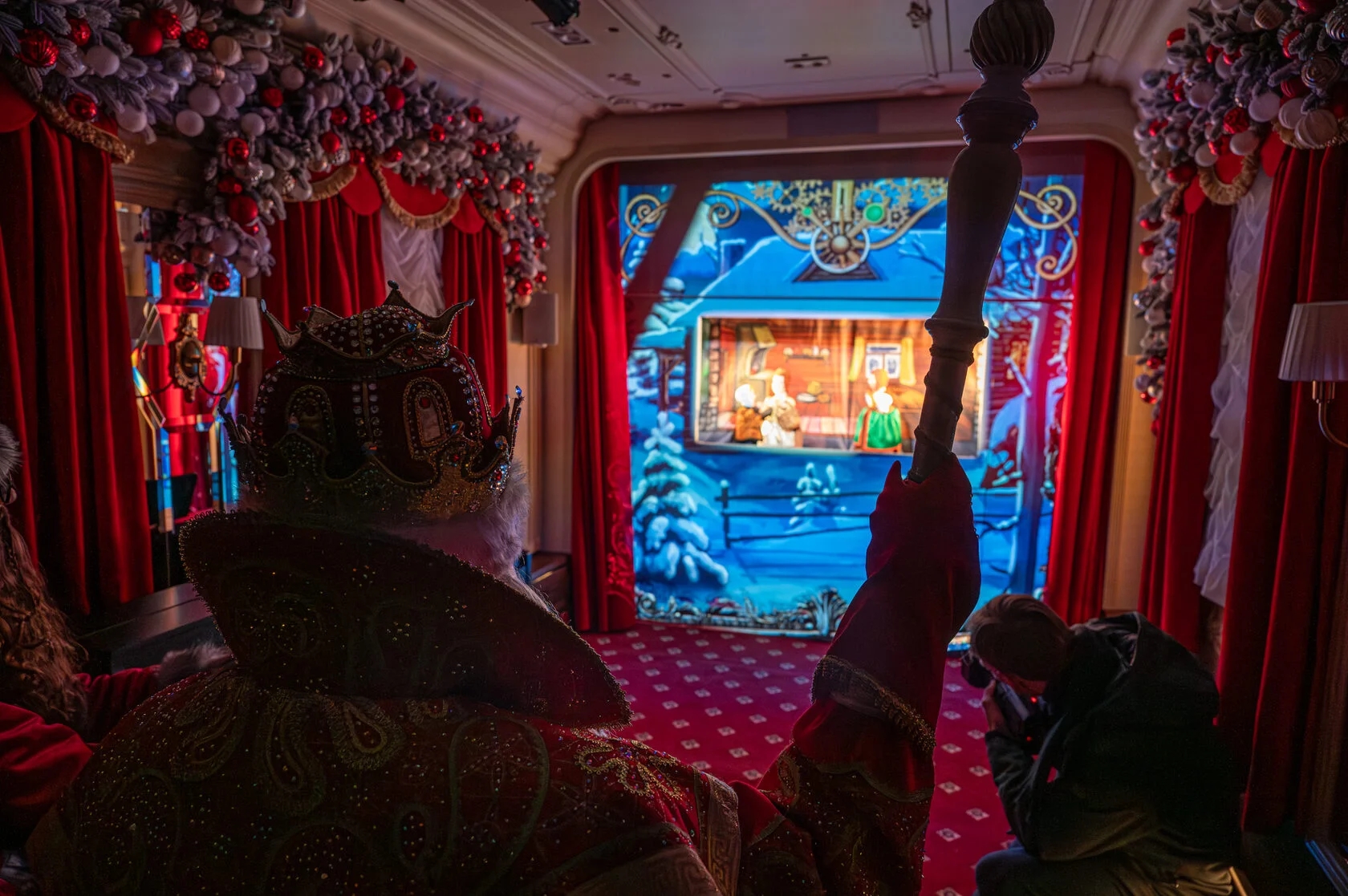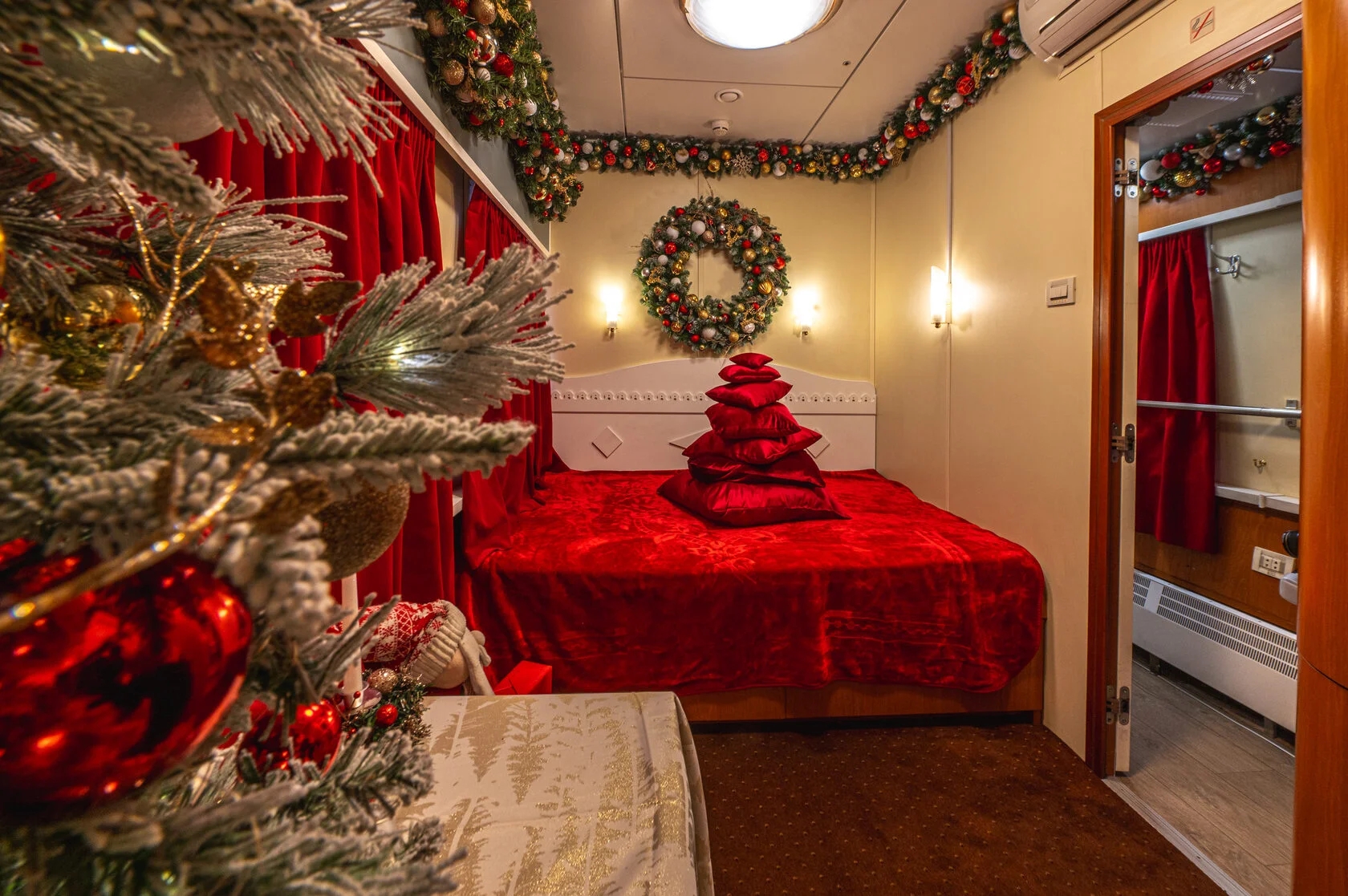 В состав поезда традиционно включены «вагон-приёмная» главного волшебника, вагон «Сказочная деревня» для проведения игр и квестов, «вагон-сцена» и «вагон-кукольный театр» для представлений, «вагон-лавка» с северными сувенирами, «вагон-буфет» и «вагон-ресторан» для чаепитий, а также спальные вагоны для команды помощников Деда Мороза.