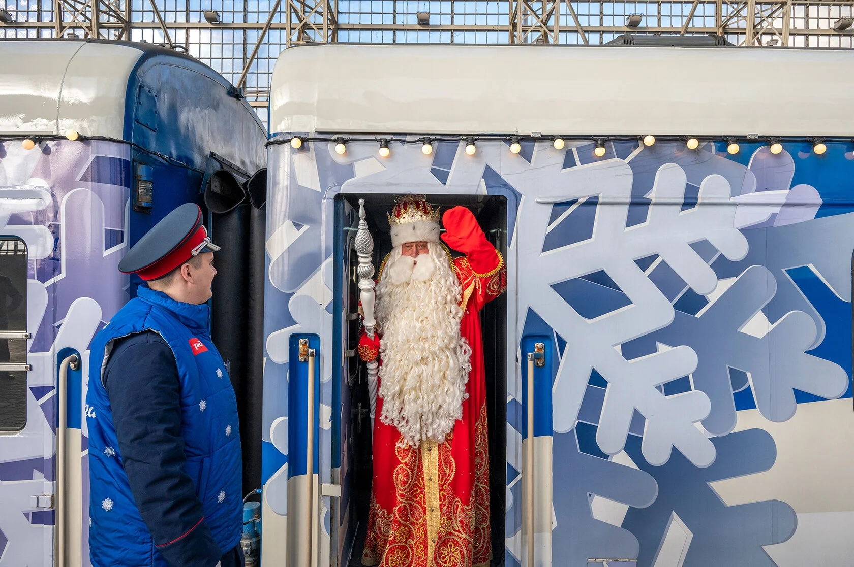 О Поезде Деда МорозаДед Мороз отправился в путешествие по России в пятый раз. У Деда Мороза есть дом – его резиденция в Великом Устюге. Но не у всех получается до неё доехать. Чтобы это исправить, пять лет назад волшебник обратился к железнодорожникам с просьбой помочь организовать встречи с детьми по всей стране. Так появился поезд, который привозит праздник в российские города и посёлки.