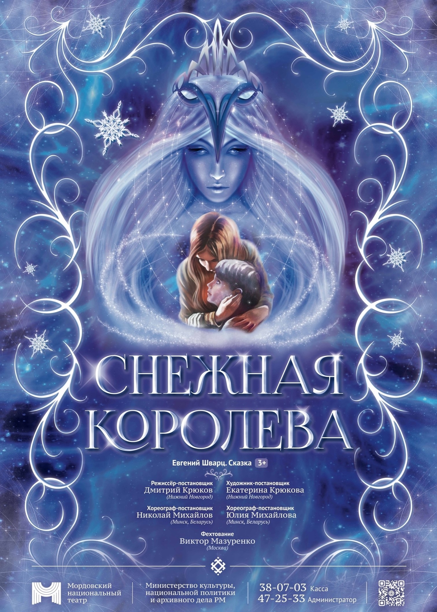 Эта история, новый спектакль по одноименной пьесе-сказке Евгения Шварца, подарит невероятный мир взрослым и юным зрителям. Мир, разделенный на две половинки: одна – уютная и теплая, согретая дружбой Кая и Герды, заботой доброй бабушки и невероятными историями Сказочника; а другая – холодная, но величественная, край Снежной королевы и ее подчиненных-марионеток... Атмосфера будет завораживать и каждым своим элементом все более и более погружать в необыкновенную сказку!