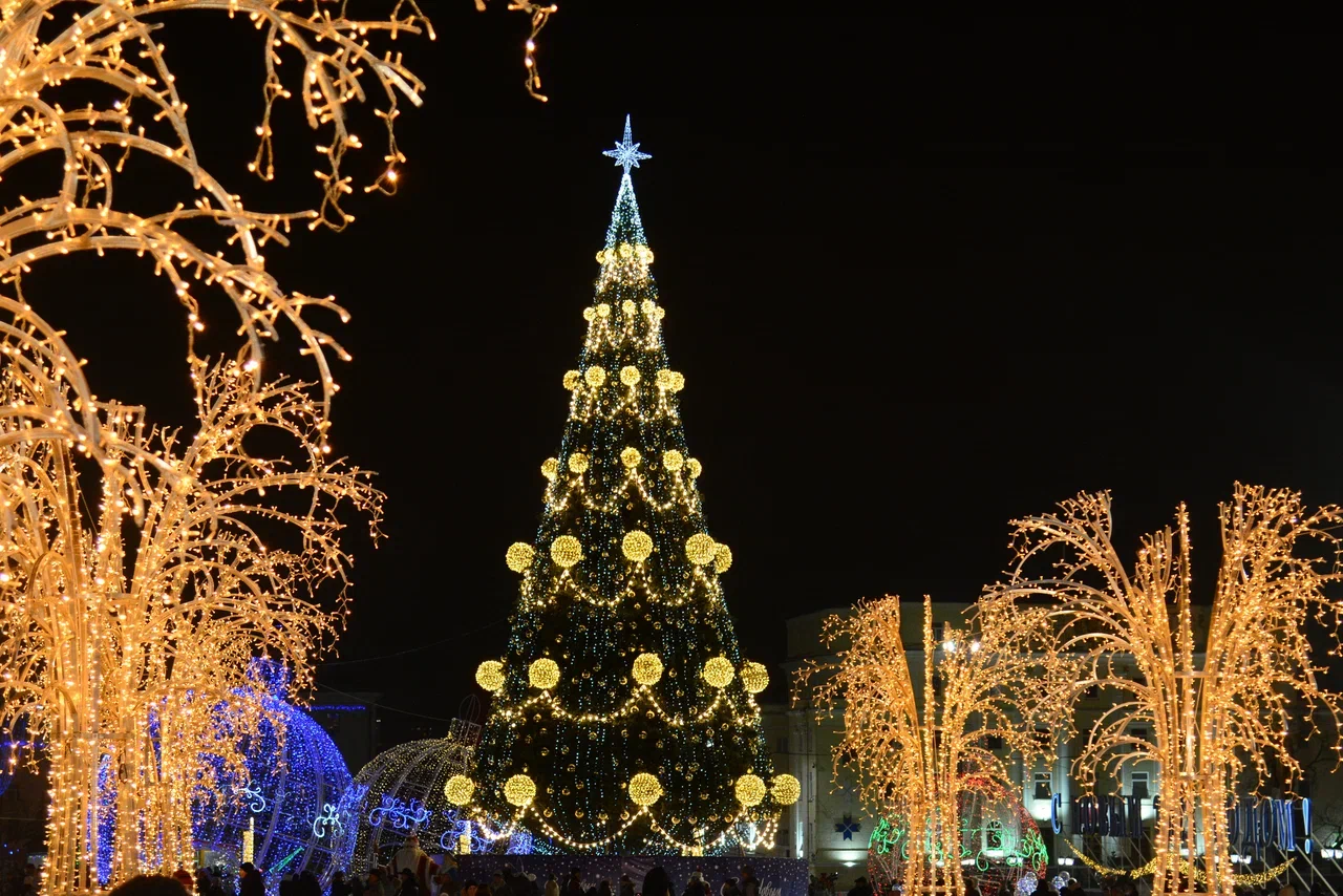 — и, конечно, Советская площадь — с праздничной иллюминацией, световыми инсталляциями и одной из самых высоких искусственных елей в России!
