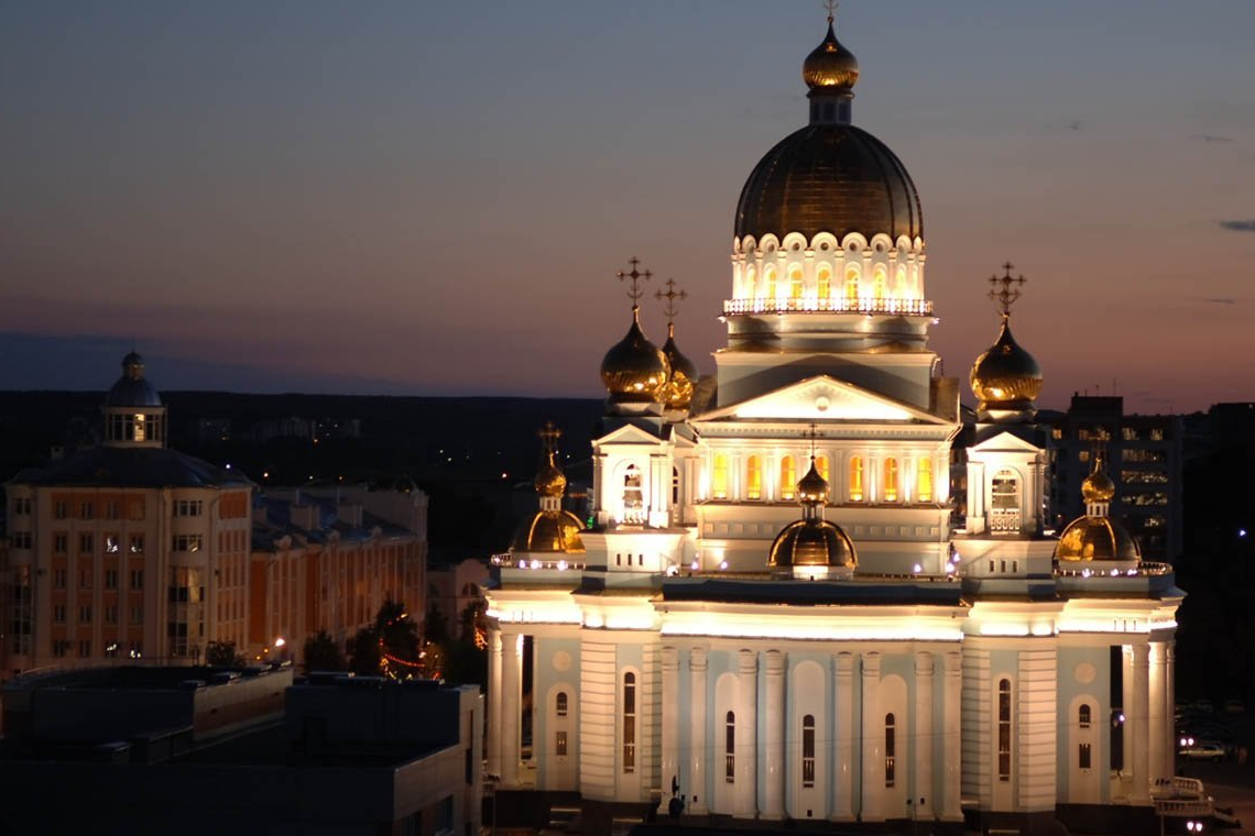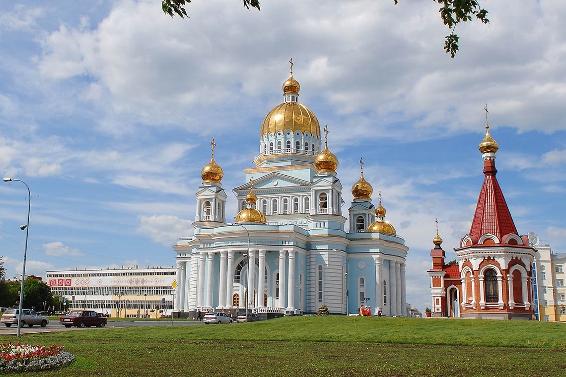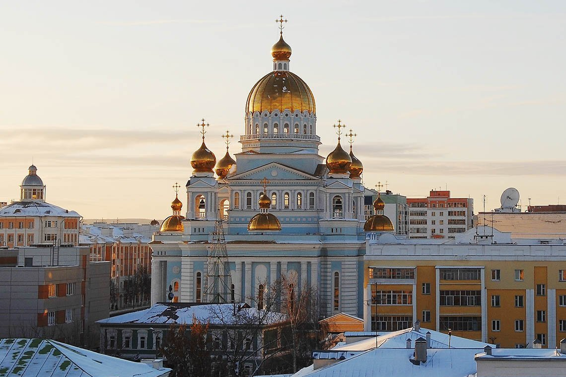 Кафедральный Cобор святого праведного воина Феодора Ушакова стал одним из высоких среди вновь построенных за последние годы культовых сооружений в Приволжском федеральном округе. Его высота – 63 м. В молельном зале площадью 690 кв. м могут одновременно присутствовать на богослужении 3 000 человек. Кафедральный собор построен в стиле ампир крестовокупольного типа. По периметру храма четыре звонницы, на которых размещены 12 колоколов, отлитых по старинным технологиям в г.Тутаеве Ярославской области. Самый главный из них весит 6 тонн! Основной цвет собора – светло-голубой. В наружной отделке использован белый мрамор. В храме установлена рака с мощами святого Ф. Ушакова. На иконе святого праведного воина Феодора – изображение адмирала с орденской лентой через плечо, с оружием и свитком, на котором слова: «Не отчаивайтесь! Сии грозные бури обратятся к славе России».