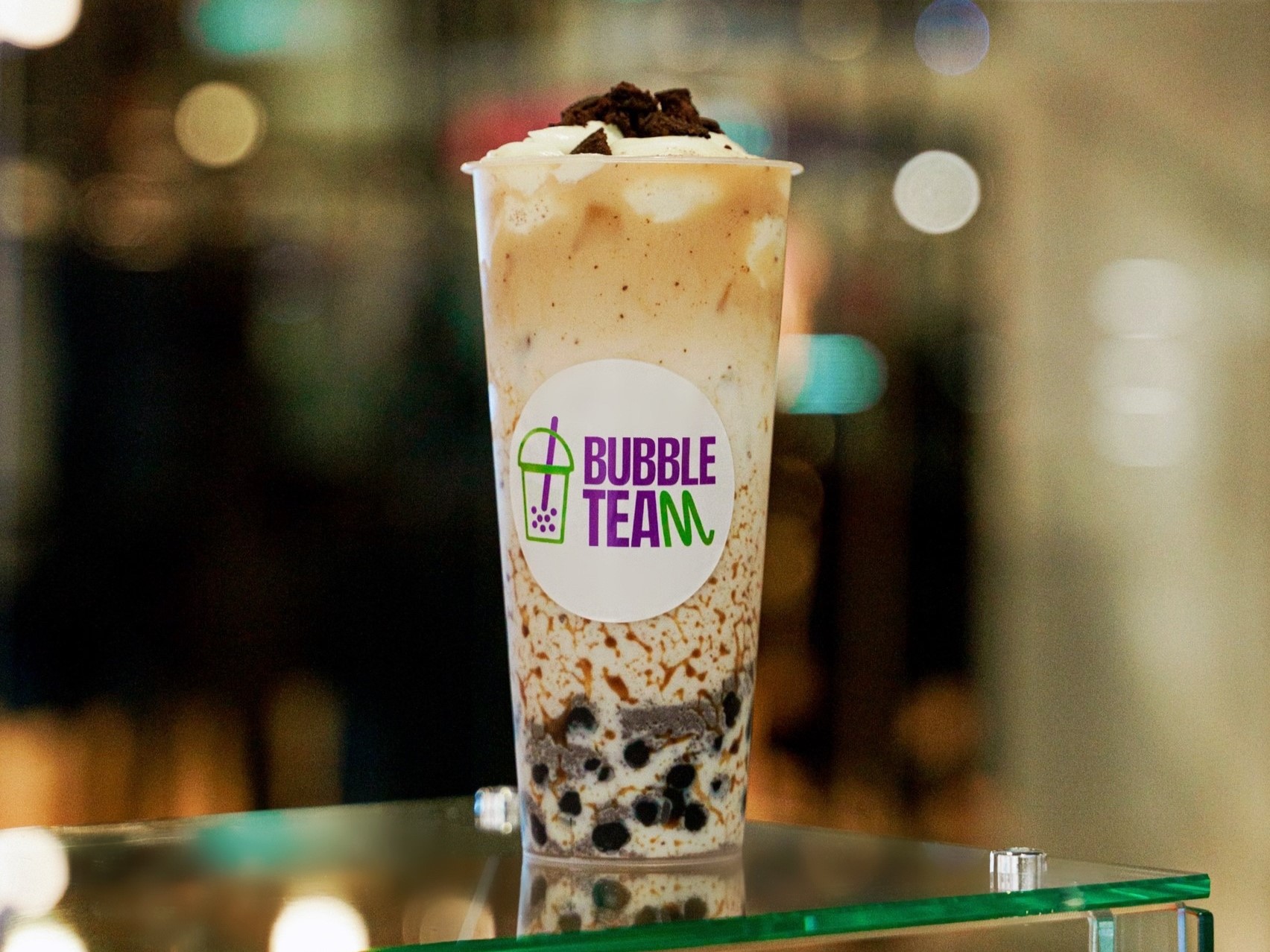 BUBBLE TEAM- это чайный напиток, состоящий из чая, молока или фруктового сока, иногда кофе, с добавлением шариков из тапиоки, кусочков желе и желейных шариков с начинкой из сока.