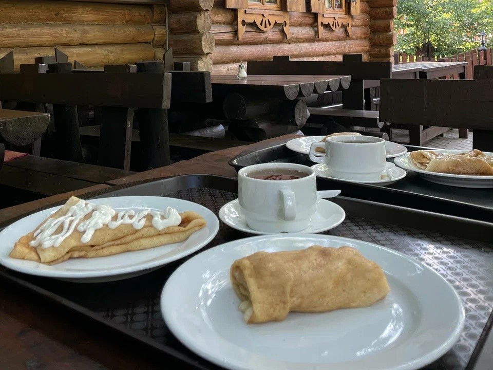 Блинная «Деревенский домик» уютно расположена в парке имени А. С. Пушкина. Вкусные блины, посиделки за чашкой кофе или горячего чая. В меню есть салаты, супы, пельмени и вареники собственного производства, наггетсы и любимая всеми картошка фри. Кроме того, здесь очень вкусный шашлык!