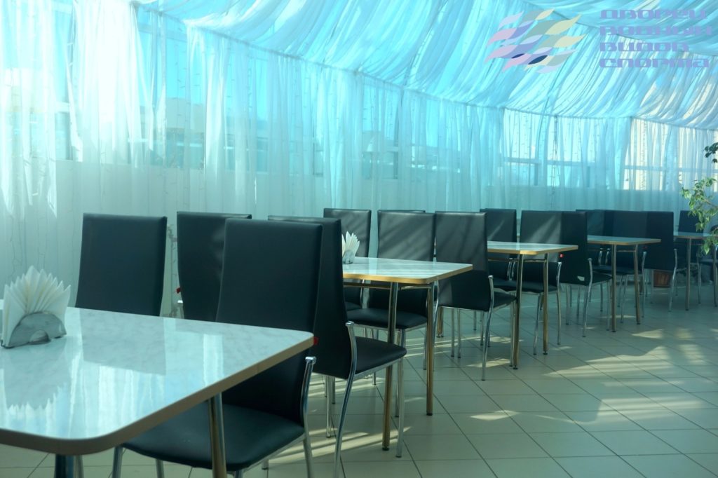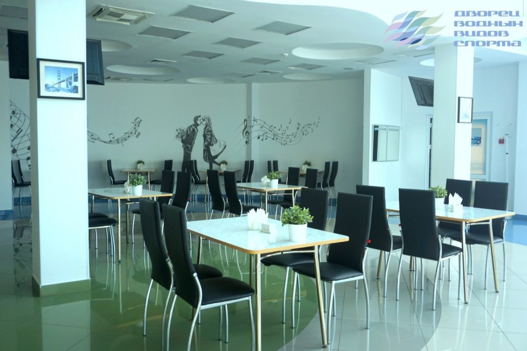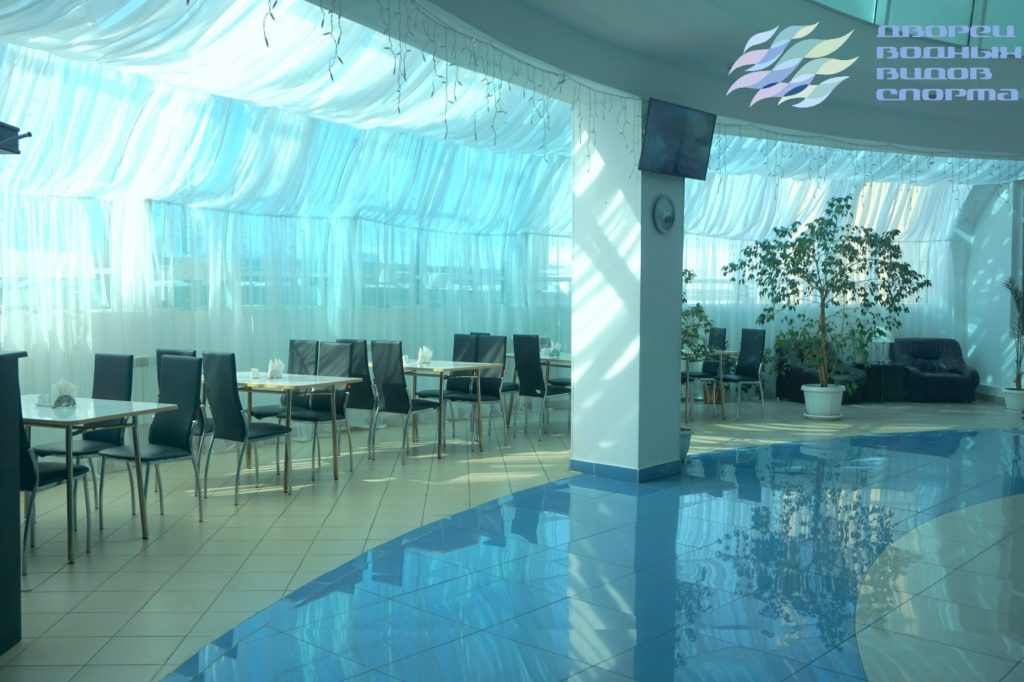 Во Дворец водных видов спорта на 3 этаже находится кафе «Панорама» – это не только домашние обеды по доступным ценам каждый день, но и банкетные блюда, которые Вам и Вашим гостям подадут в двухуровневом зале, декорированном по Вашему вкусу!