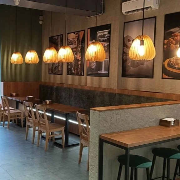 В кафе есть открытая кухня, где можно наблюдать за процессом приготовления блюд.